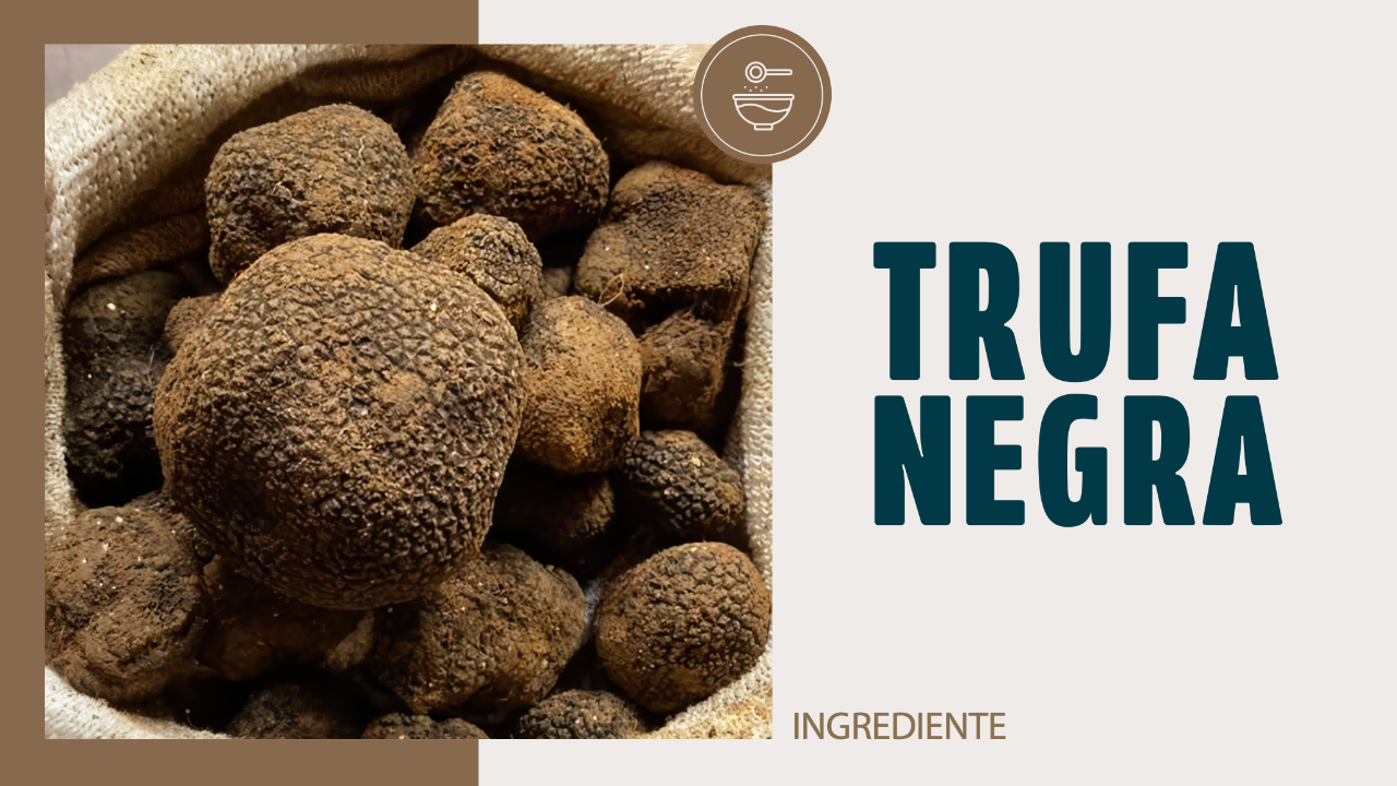 La trufa negra es un hongo subterráneo (hipogeo) que crece en simbiosis con las raíces de árboles como la encina o el roble. Existen diferentes variedades de trufa negra, pero la más apreciada en gastronomía es la Tuber melanosporum, conocida por su intensidad aromática, su sabor umami profundo y su rareza. Se recolecta con la ayuda de perros entrenados —y en algunas zonas aún con cerdos— debido a su potente perfil aromático, que incluye compuestos similares a feromonas animales.