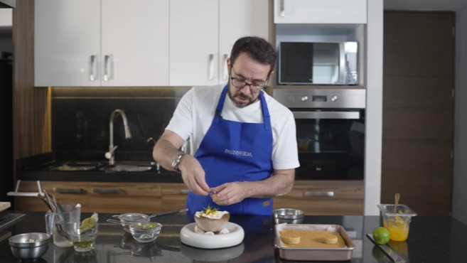 En esta clase vas a entender cómo construir un postre al plato fresco y visual sin perder practicidad. Aquí trabajas el balance entre grasa, acidez y fruta; la formulación de un sorbete de coco con buena textura; el uso de la cáscara como contenedor real y parte del discurso del postre; la extracción de sabor y control del amargor en la piel de lima; el valor de una mantequilla noisette para dar profundidad; la gelificación y rotura de un gel para sumar jugosidad; y el contraste térmico y de textura con gotas heladas. También verás cómo montar un postre que se vea limpio, ligero y bien pensado para aguantar servicio de verdad, con partes listas de antemano y una salida rápida.